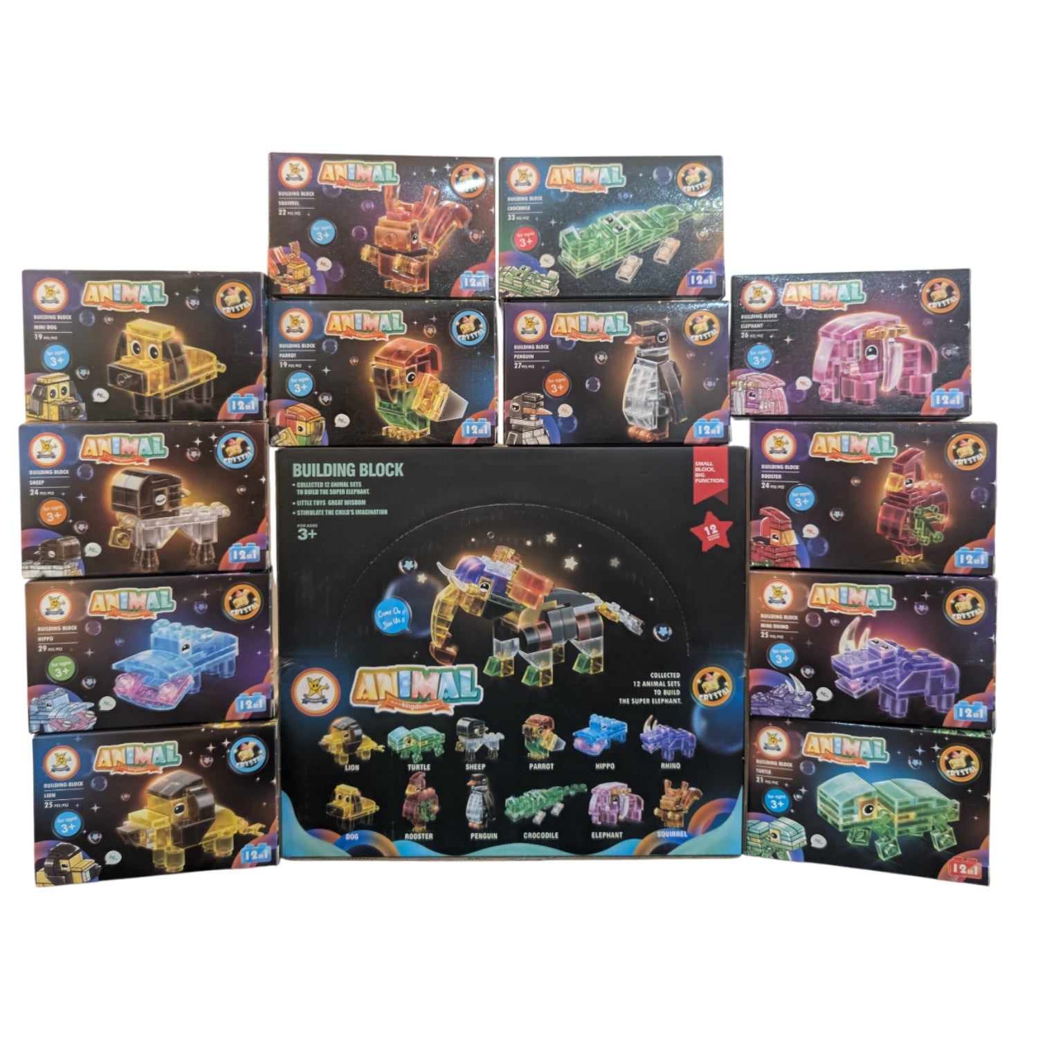 Build 12 small adorable Animals or combine them all together into one large Elephant
