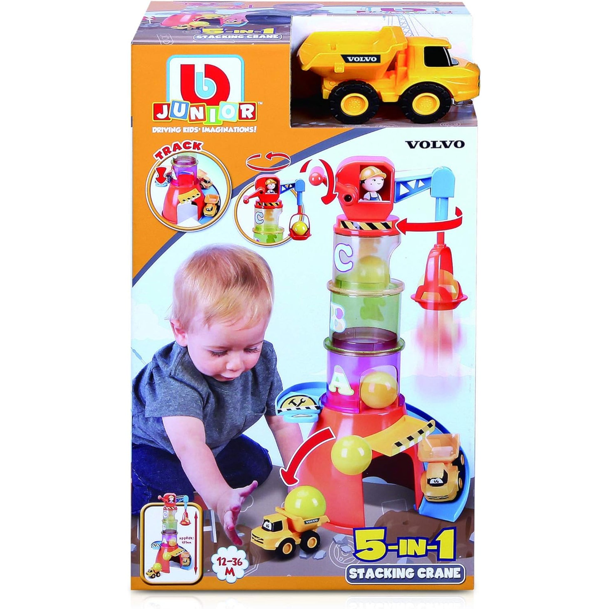 The nesting cups stack to form a tower, which then has the crane added to it, complete with it's lifting arm and cranking lever. Use the crane to lift balls to the top, then drop them into the cup and watch as they tumble down the tower. Move the dump truck into position and it can catch the balls, ready to ship them off to wherever they need to go. The set includes a dump truck based on a Volvo design that almost looks like a cartoon character, complete with big eyes on the windscreen.