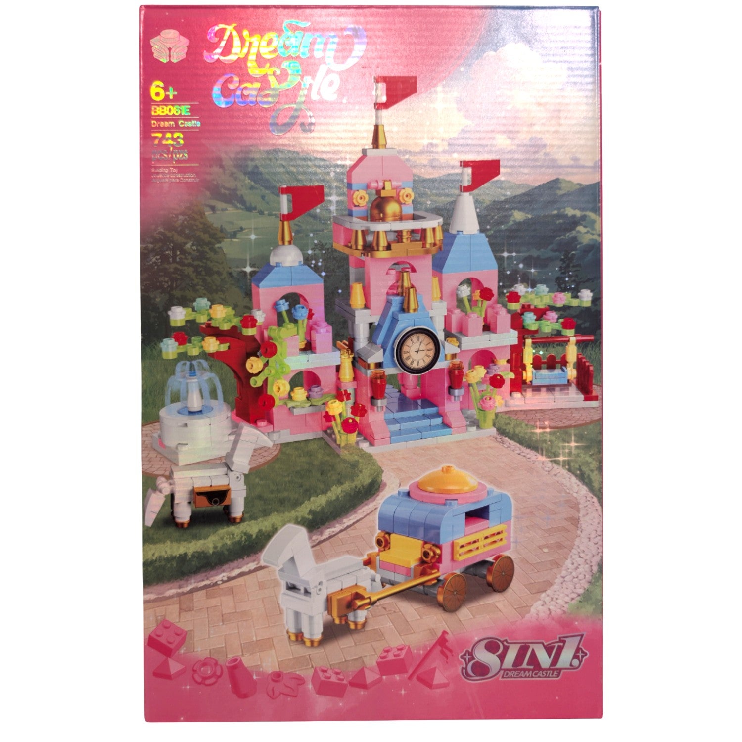 Build 8 tiny princess village structures or combine them all together to build one large dream castle.