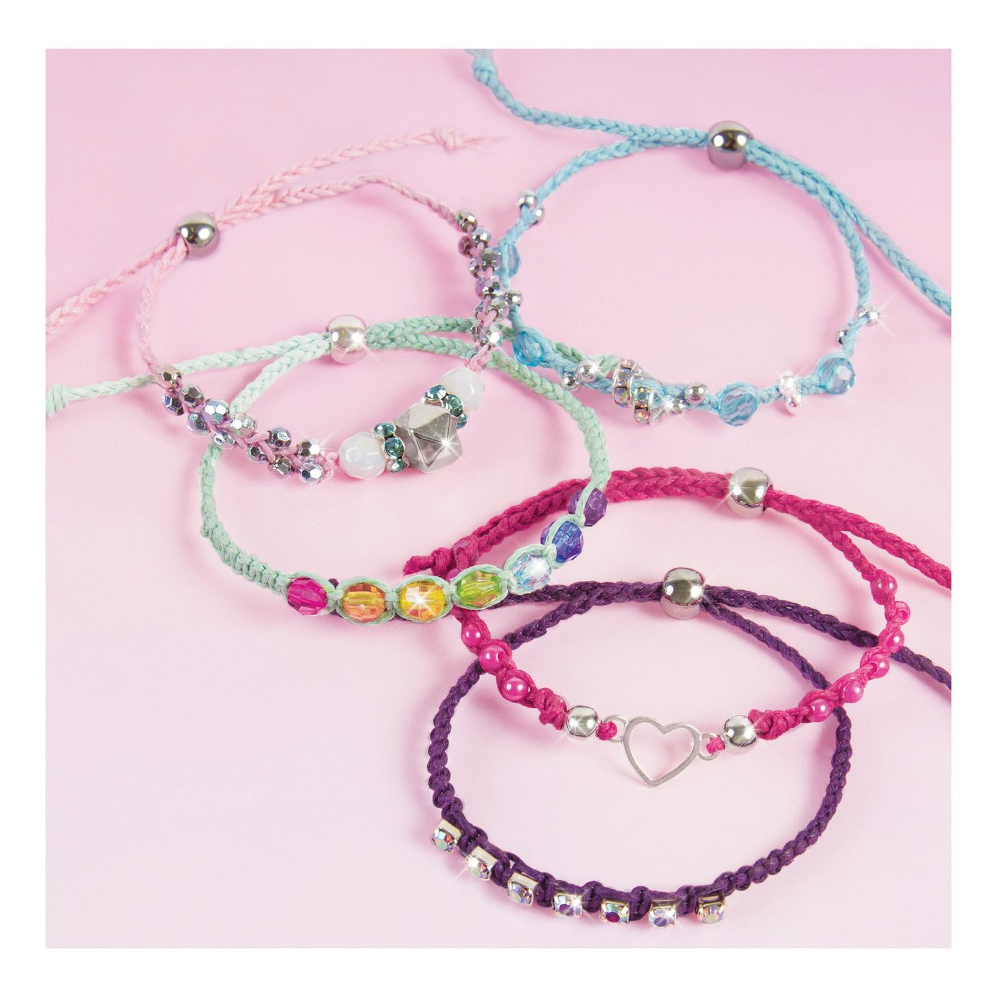 Learn simple knotting techniques to create five beautifully styled bracelets using this comprehensive kit’s mix-and-match waxed cord and trendy beads.