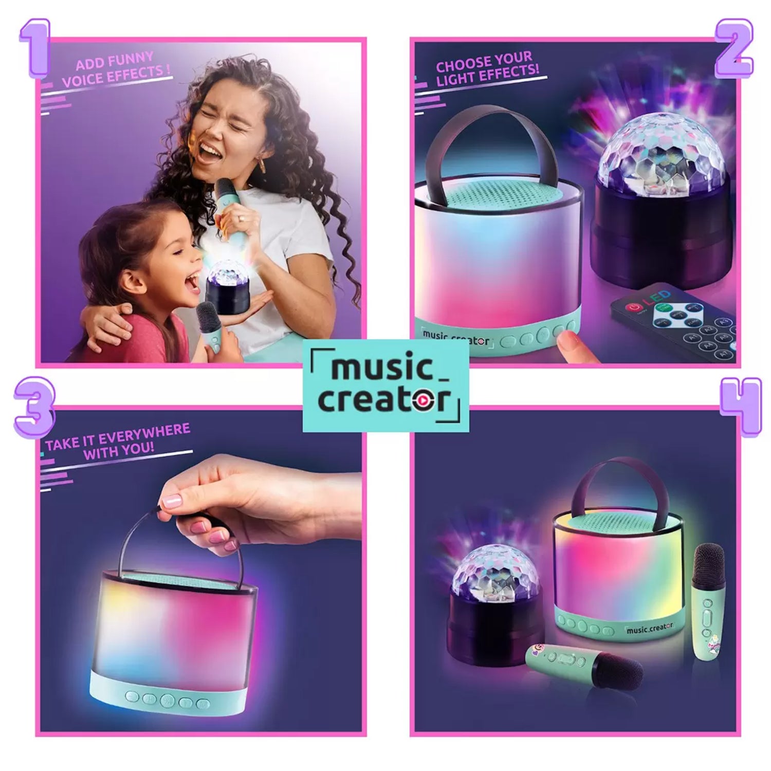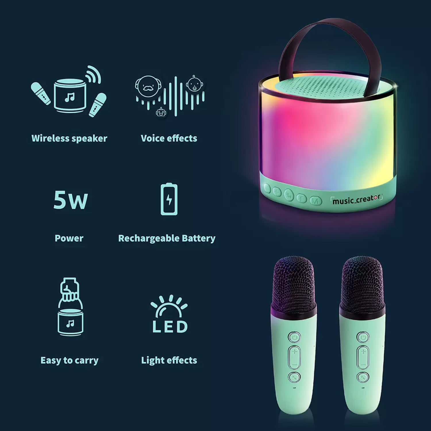 Take the stage as a solo act or a duo with 2 wireless microphones. Stream your favourite songs to keep the party going. Also Includes fun voice changing effects.