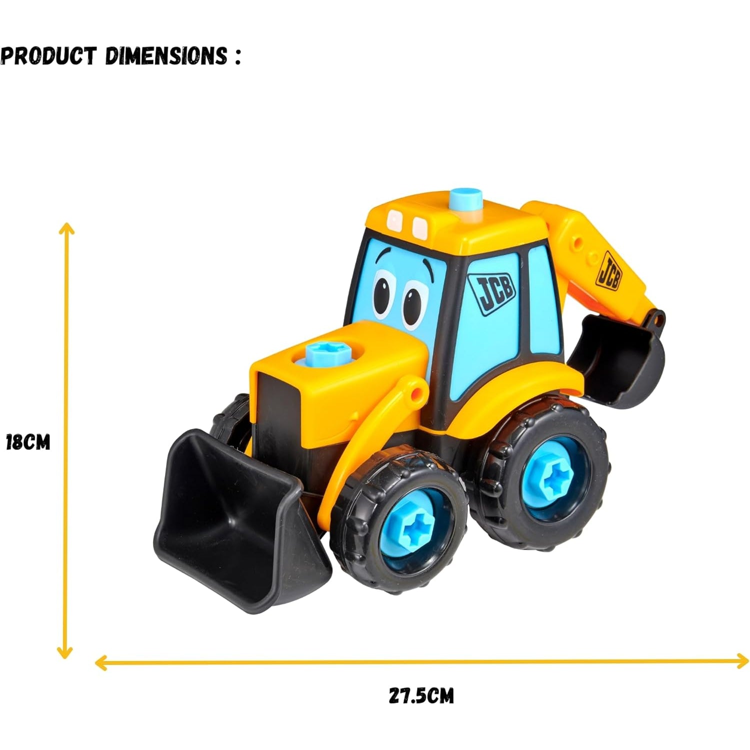 Let's get to work with the My 1st JCB Take Apart Joey! Designed in bright JCB colours with Joeys friendly face, the 16-piece JCB has two ways to play: free-wheeling construction truck and a buildable toy. Use the Battery-operated drill to take joey apart, remove the wheels, take off the bonnet and remove the front bucket and rear scoop and then put joey back together again for more building fun. The Joey Digger is easy to assemble for little hands to enjoy hours of imaginative fun.